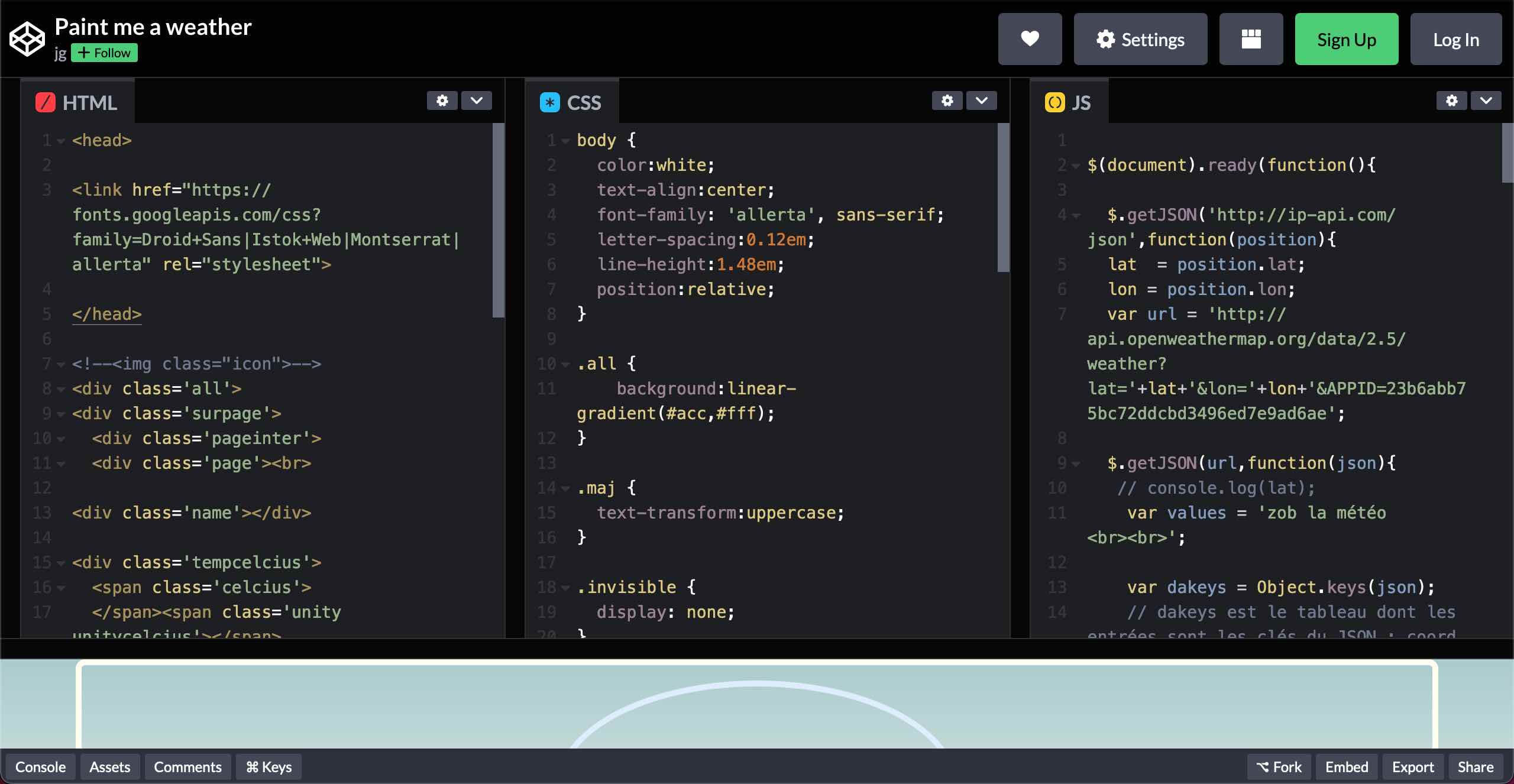 Weather web app displaying a painting for each weather, 2015