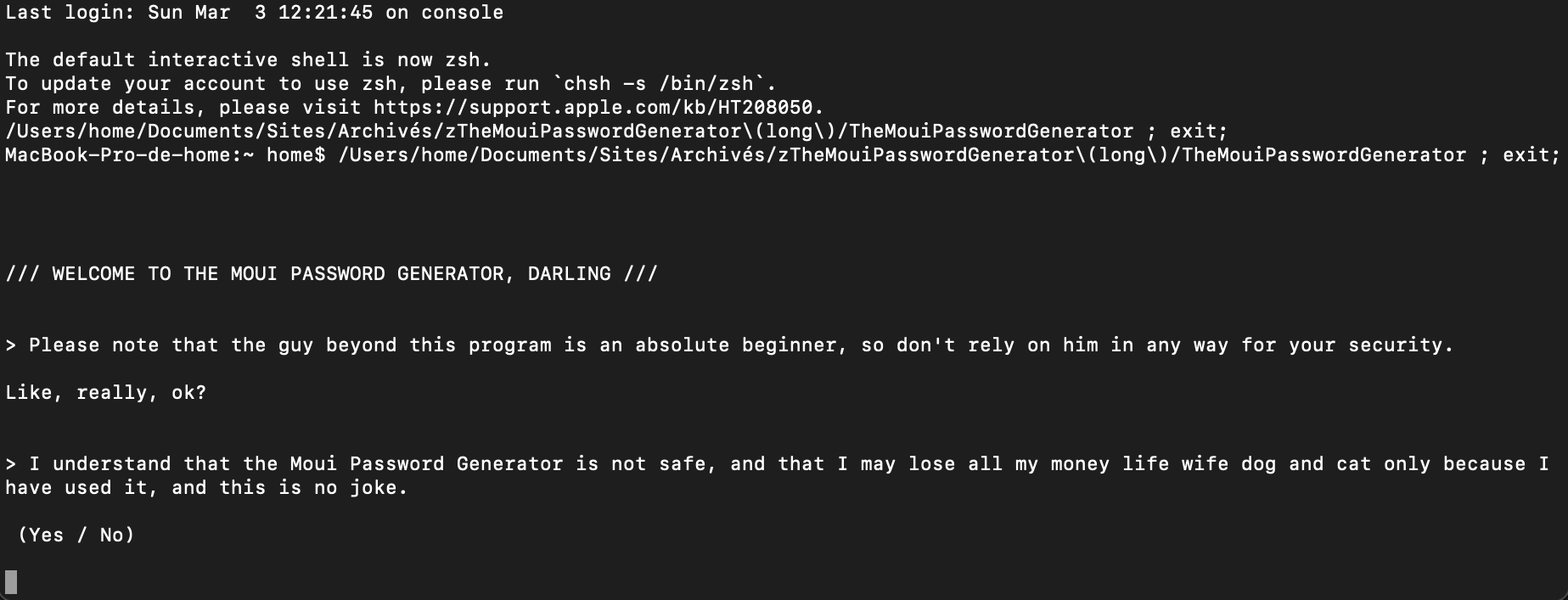 Python Débutant, ai codé une application Terminal de génération de mots de passe - ici