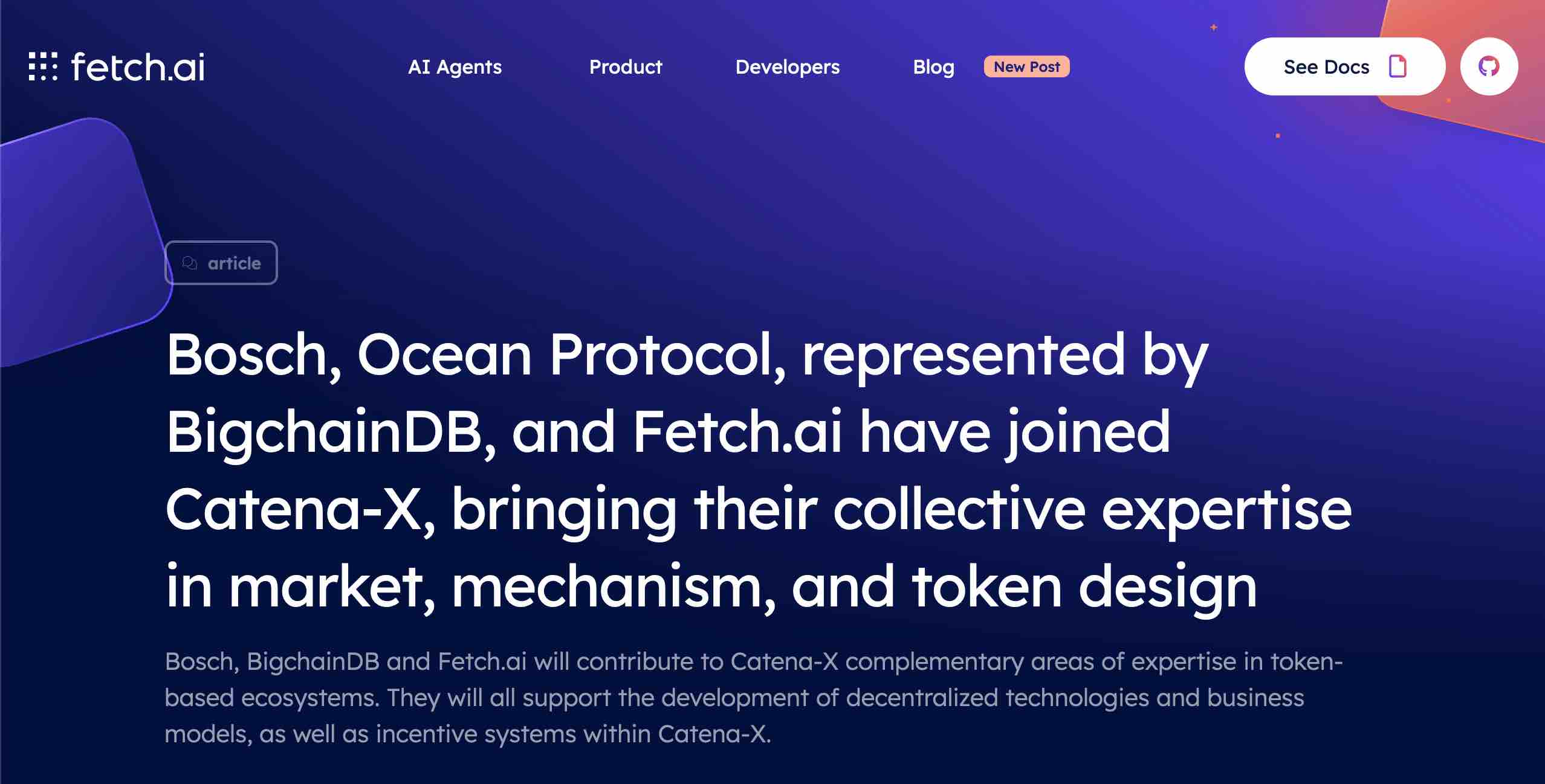 Bosch, Ocean Protocol, represented by BigchainDB, and Fetch.ai have joined Catena-X, bringing their collective expertise in market, mechanism, and token design